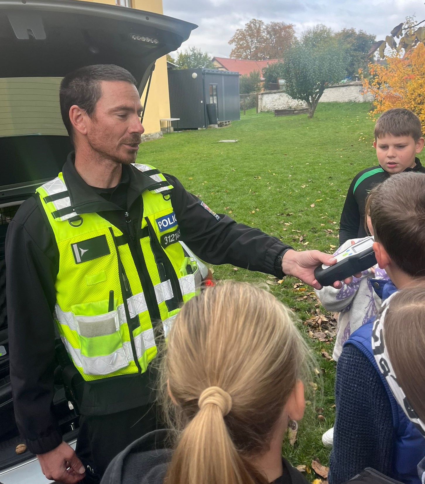 Být viděn - je na silnicích velmi důležité pravidlo. Příbramští dopravní policisté nejen tuto zásadu bezpečného pohybu v silničním provozu připomněli dne 15. října školákům ze základní školy v Mokrovratech. Navíc jim ukázali policejní techniku a vybavení, které při své práci používají.